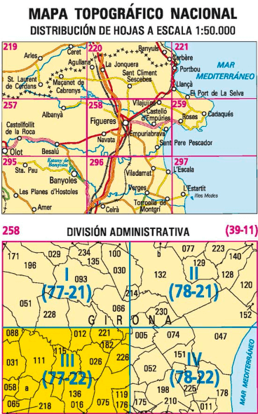 - Wandelkaart 0258.1 Figueres, Girona, Catalonië - CNIG