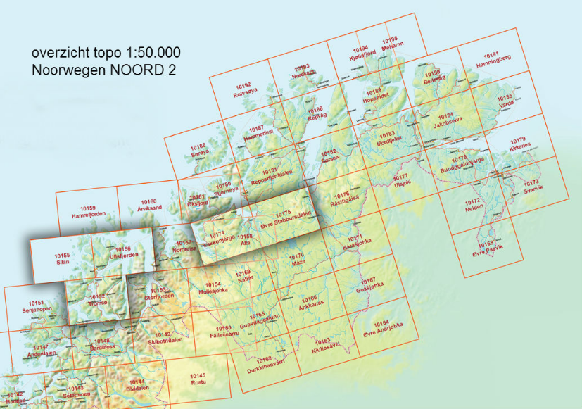 Wandelkaarten Finnmark, Noorwegen van Nordeca AS. Ideaal voor tochten in Noorwegen.