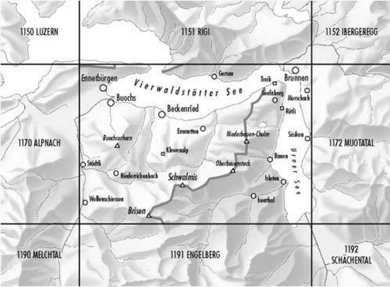 Productomschrijving: Kaart 1171 - Gelegen vlak aan de monding van de Vierwaldstättersee, en rechts van het gebied UNESCO Biosphäre Entebuch, is deze omgeving ook zeer bergachtig en een schitterende wandelplaats voor de wandelaar die een beetje van alles wenst te proeven.