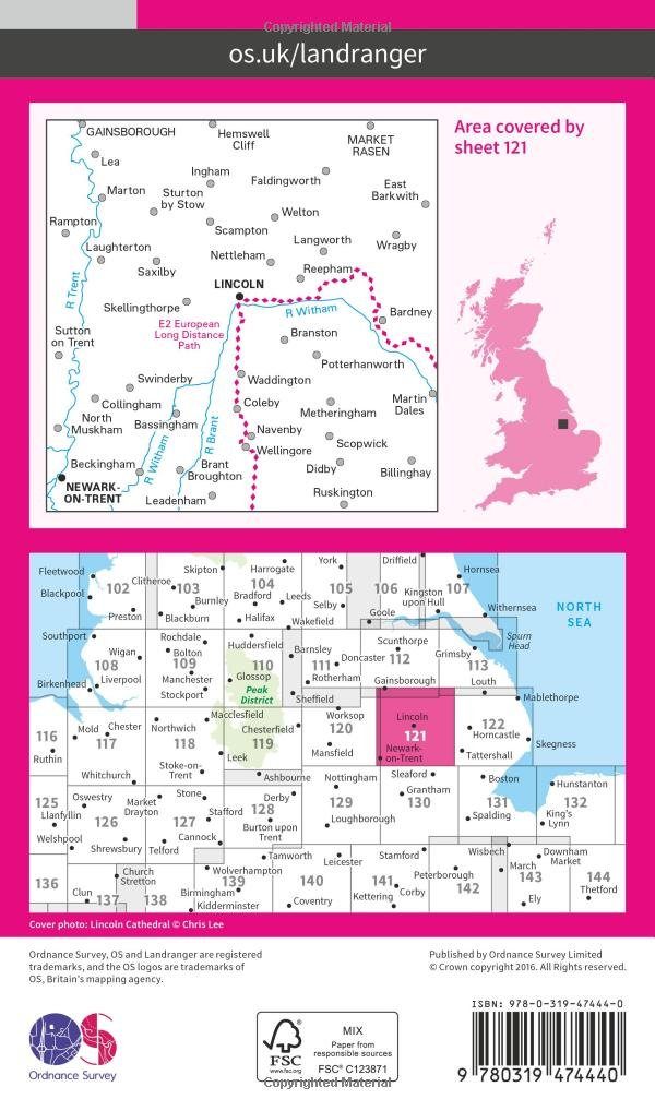 Wandelkaart 121 Lincoln & Newark-on-Trent- England - OSI • 9780319474440