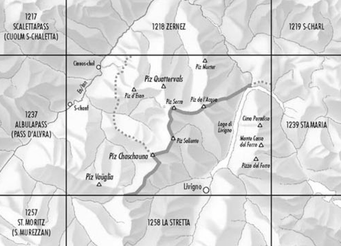 Wandelkaart Piz Quatterva - Graubunden Zwitserland - Swisstopo