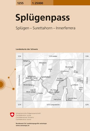 - Wandelkaart 1255 Splügenpass Graubunden - Swisstopo