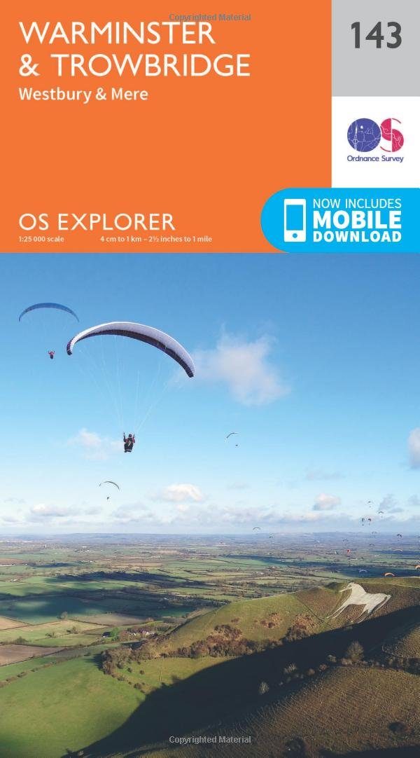 Productdiscription: Map sheet number 143 in the OS Explorer series covers the west of Wiltshire, taking in Cranbone Chase & West Wiltshire Downs. Highlights of the area include: Mid Wilts Way, Wessex Ridgeway, Monarch's Way and Imber Range Perimeter Path. The OS Explorer map for Warminster & Trowbridge is available in both the standard paper version and weatherproof 'Active' version.