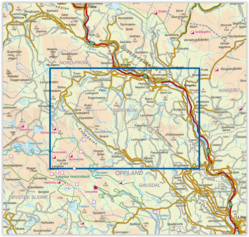 Wandelkaarten Oppland, Noorwegen van Nordeca AS. Ideaal voor tochten in Noorwegen.