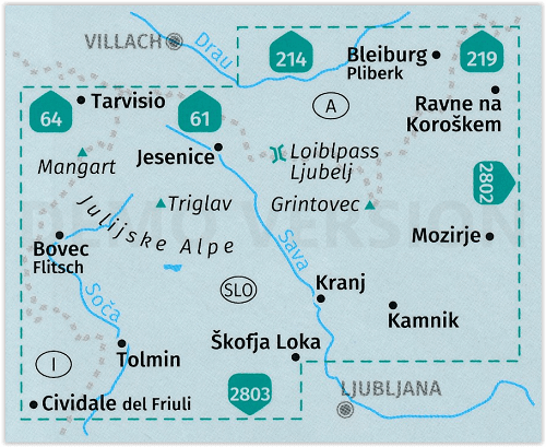 Wandelkaart 2801 - Julische Alpen - Steiner Alpen - Kompass