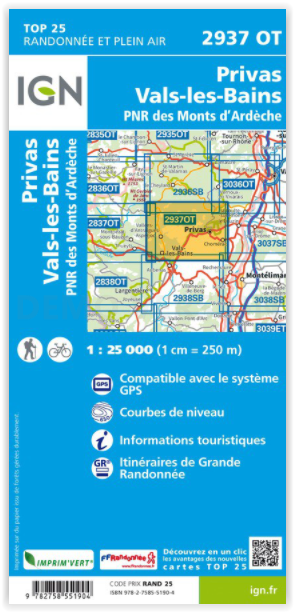 - Wandelkaart 2937 OT Privas & Vals-les-Bains - IGN