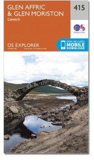 Productdiscription: Map sheet number 415 in the OS Explorer map series is ideal for discovering the area around Glen Affric in the highlands of Scotland. Glen Affric is a National Scenic Area, and offers the opportunity for many walks around beautiful scenery. There are many Lochs to discover and mountain peaks to hike to enjoy this area to it's full potential. The OS Explorer map for Glen Affric & Glen Moriston is available in both the standard paper version and weatherproof 'Active' version.