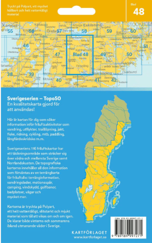 Elke kaart heeft een schaal van 1:50.000, wat zorgt voor optimale balans tussen detail en overzicht – ideaal voor wandelen, fietsen en andere buitensporten. De kaarten zijn gebaseerd op actuele gegevens van Lantmäteriet, het Zweedse nationale landmeetkundig instituut. Hierdoor bevatten ze betrouwbare en actuele informatie over wandelpaden, hoogtelijnen, meren, rivieren, bosgebieden, moerassen, wegen, sporen en bebouwing.