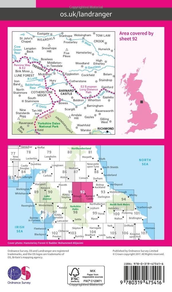 - Wandelkaart 92 Barnard Castle Teesdale - England - OSI
