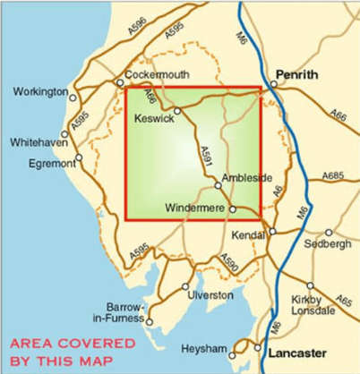 De beroemde bergen en heuvels van het Lake District op één kaart, met kleurarcering voor eenvoudige identificatie van heuvels en dalen en gedetailleerde informatie over rotsen voor klimmers. De achterkant van de kaart bevat gedetailleerde 1:20000 vergrotingen van Scafell, Gable, Bowfell, Langdale Pikes en Pillar, een geologische kaart van het Lake District, advies over bergincidenten en eerste hulp.