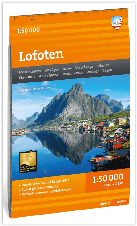 Met kaartweergaven aan zowel de voor- als achterkant beslaat deze kaart de hele Lofoten. De kaart maakt deel uit van de moderne kaartenserie van Calazo, met unieke terreininformatie op basis van laserscanning vanuit vliegtuigen en betere nauwkeurigheid in de details. We hebben onder meer gedetailleerde luchtfoto's gebruikt om paden in de omgeving te corrigeren.